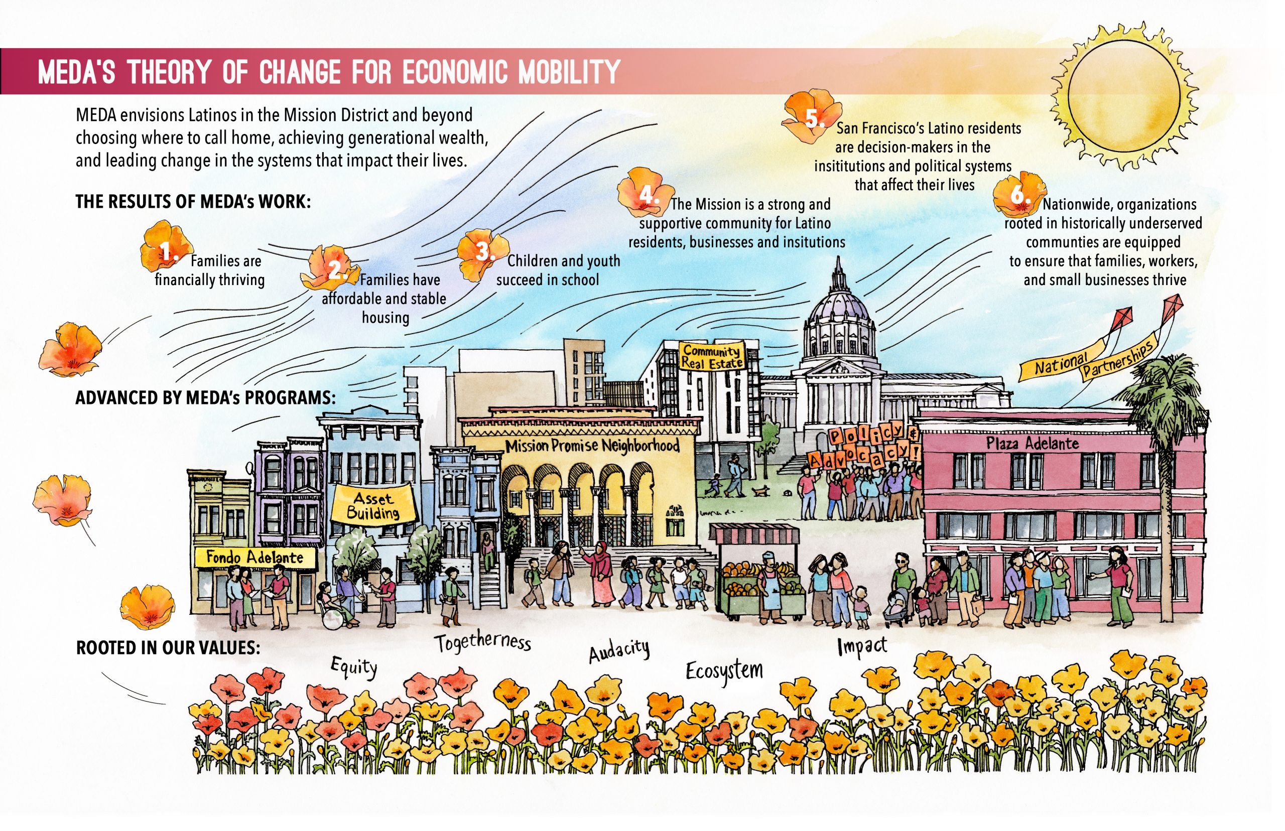 Rooted in San Francisco’s Mission District, MEDA works in partnership to advance economic mobility for Latino communities by fostering community ownership, pathways to opportunity, and lasting systems change.